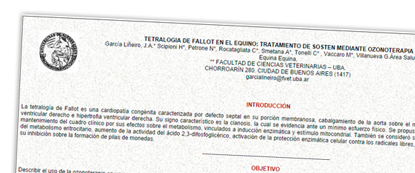 El equipo del "Área Salud y Producción Equina, de la Facultad de Ciencias Veterinarias, UBA" nos ha facilitado, para su divulgación, una investigación resultante de un tratamiento realizado con Ozono.