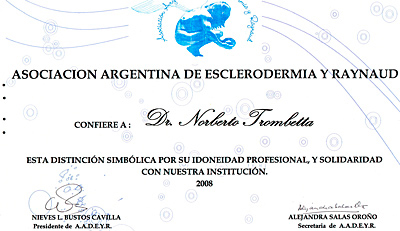 En un acto celebrado por la Legislatura de la ciudad de Bs. As., efectuado el día 24 de noviembre del corriente año, en el "Salón Dorado del Palacio Legislativo" el Dr. Roberto Trombetta y el presidente de ADELO el Dr. en Ciencias Químicas Francisco Bacchetta han sido reconocidos como Personalidades Destacadas por la Asociación Argentina de Esclerodermia y Raynaud .